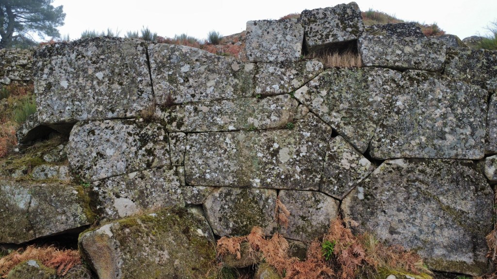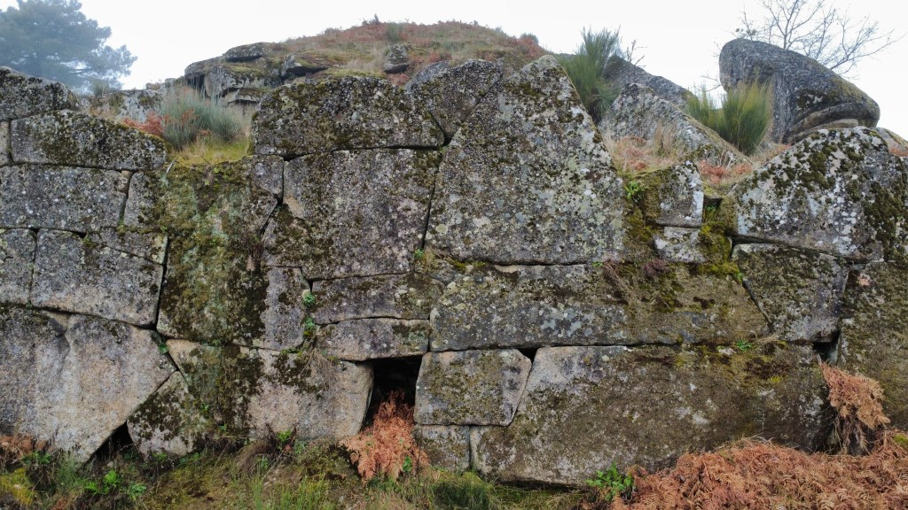 Characteristics: Castro do Pópulo occupies a strategic hilltop overlooking surrounding valleys in northern Portugal. The original fortifications are quite well preserved and are made of rectangular dry-fitted granite blocks with some multi-angled ones at the base; however, one particular stretch of polygonal masonry can rightly be defined as cyclopean. The eastern facing section which extends for approximately 20-30 meters is made of massive polygonal blocks tightly fit one to another. The largest blocks are over 1-2 meters long and sit at least 1 meter deep. Interestingly, the tightly joined polygonal blocks abruptly end and more rectangular stones take over indicating a change in builder or skillset at some point in the distant past. The wall’s precision evokes a comparison to the most precise polygonal walls of Italy, Greece and Turkey and makes it one of a kind among Portugal’s castro culture. Yet, despite such intriguing mysteries, the site is still not fully understood or properly dated. Also of note, directly above the polygonal wall lies a large outcrop of granite boulders. It is unclear what significance this had for the local populations who built and inhabited this site.
