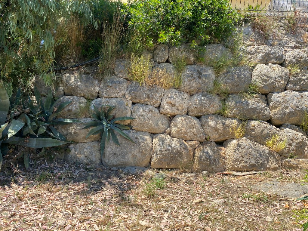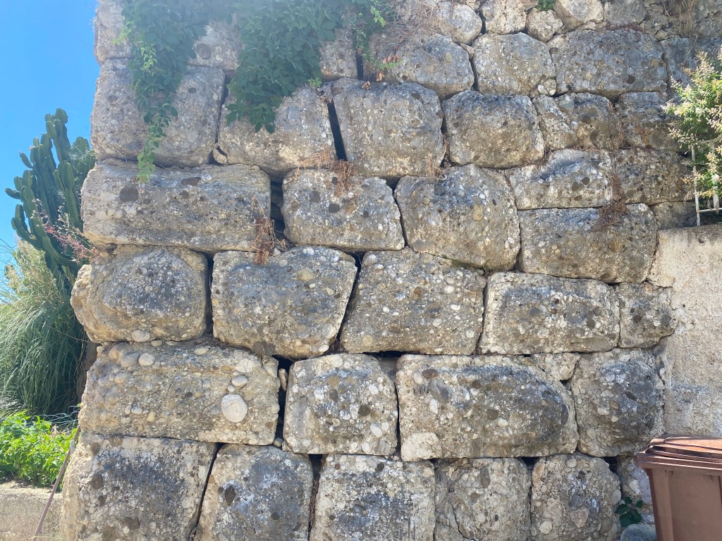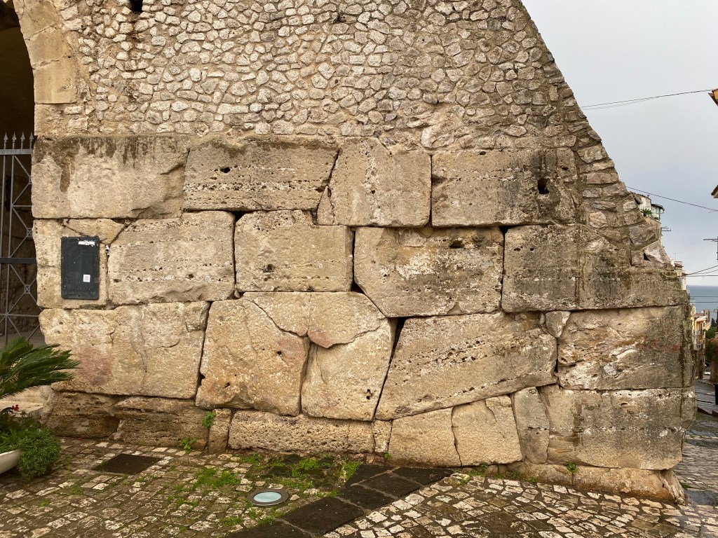 Characteristics: Formia contains the remains of polygonal fortification walls on the slopes above its historic center, particularly in the Castellone district (ancient acropolis zone). The remaining sections of polygonal masonry display various styles which makes dating and attribution more complex. The masonry follows the natural contours of the hill, functioning both as a defensive circuit and terracing support. Portions of the polygonal walls have been incorporated into later Roman and medieval structures. One particular section of impressive size and precise joinery supports the medieval era Torre di Castellone. Another terrace section of wall built with less precise and more rectangular blocks supports a private residence.