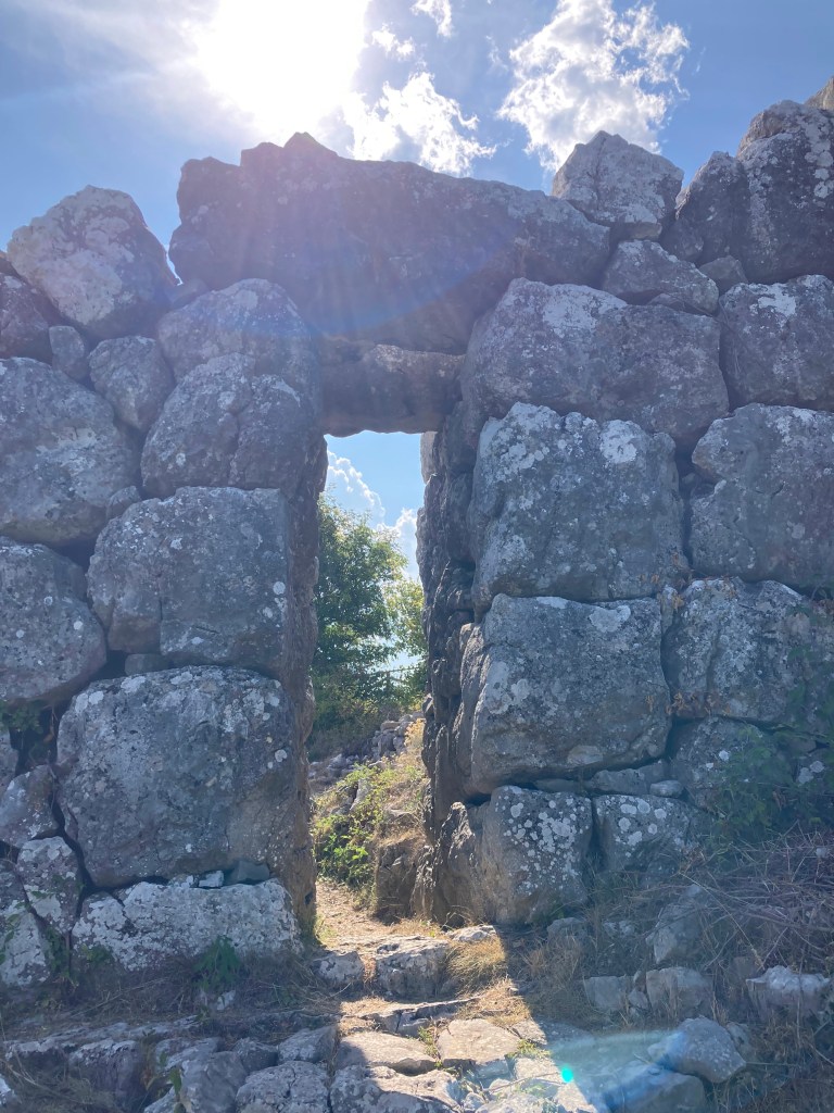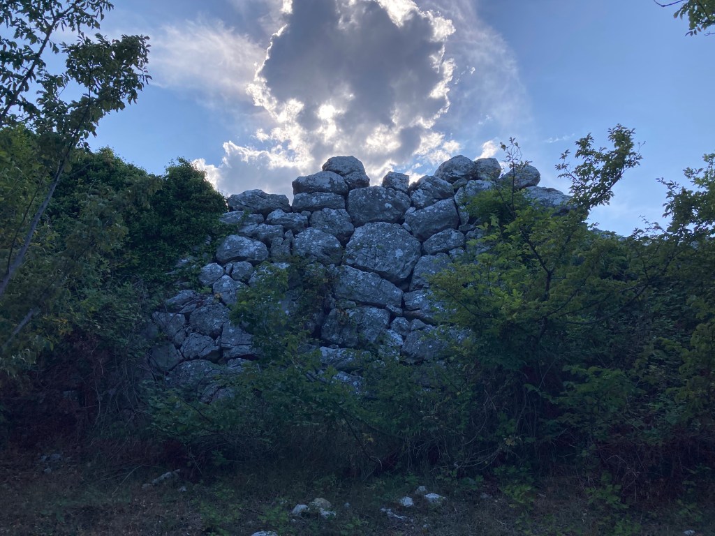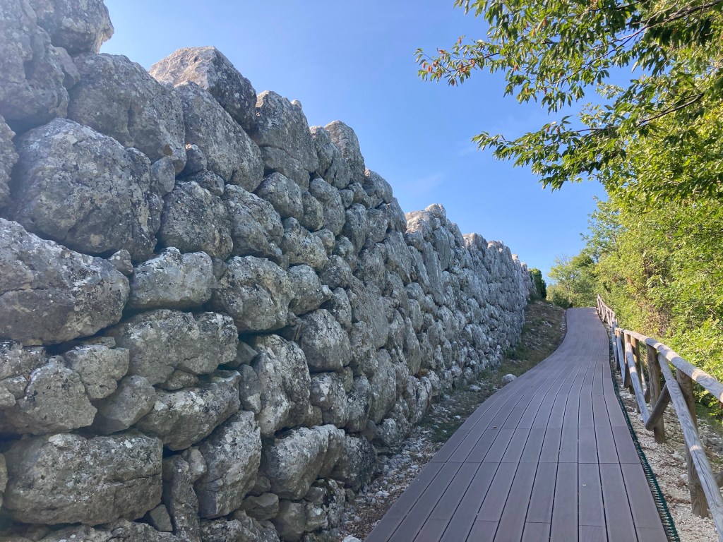Characteristics: A mostly preserved stretch of rough polygonal stonework extends for almost 180 meters. It stands up to 5 meters high in places and is characterized by three megalithic gateways.