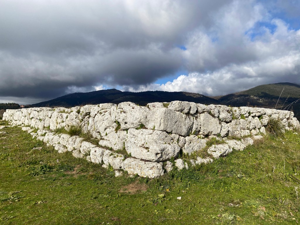 Characteristics: Contains a circuit of polygonal walls built high on a raised plateau overlooking the Pontine Plain. The sites boasts numerous polygonal platforms and a massive curved gateway. The wall which runs to the left of this gate is made of incredible type III polygonal stonework and is pierced by a singular postern which leads underground to a dead end. Another interesting feature is the so called La Loggia, a massive polygonal tower overlooking the exposed western side of the settlement.