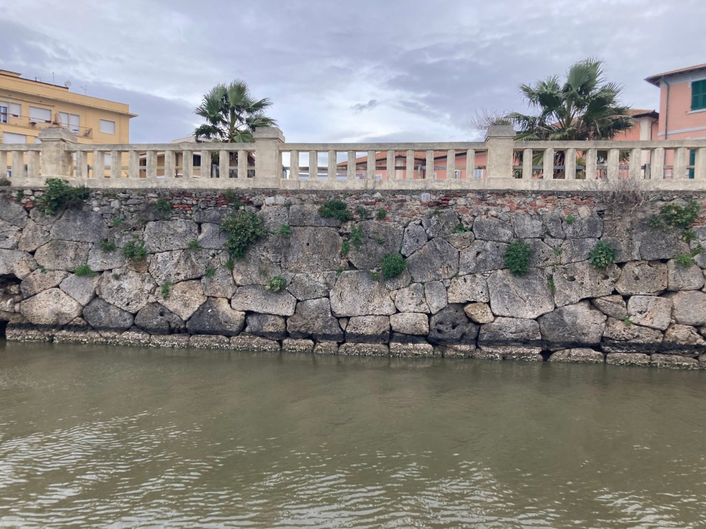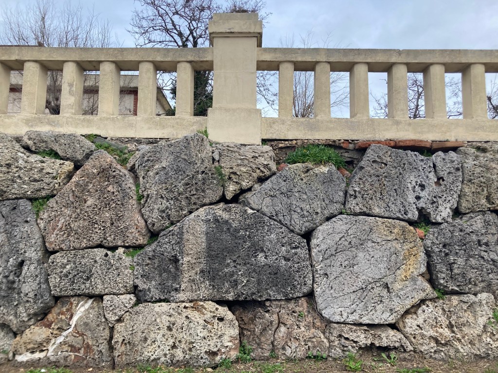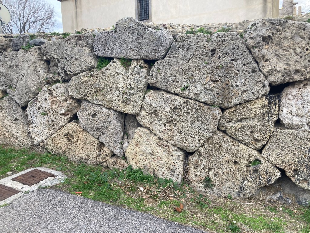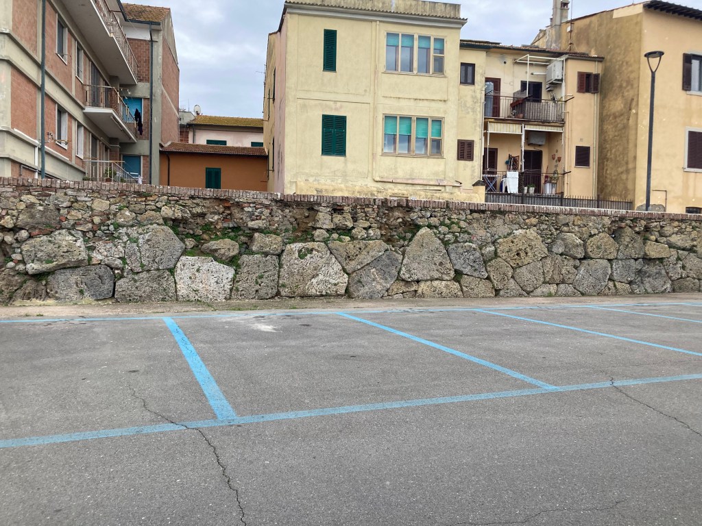 Attribution: The original polygonal masonry exposed to the lagoon is attributed to the Etruscans before later Roman intervention