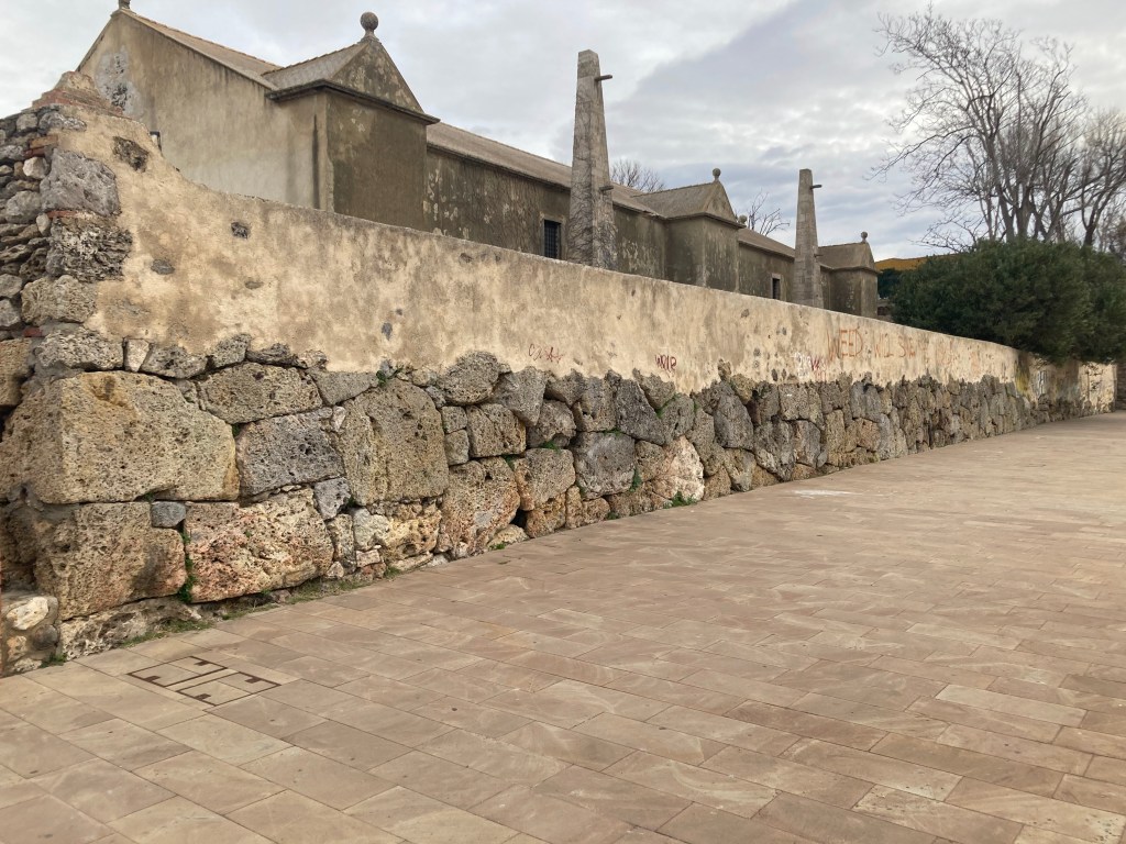 Characteristics: A unique circuit of polygonal walls which encloses the modern city in the middle of a lagoon. Numerous stretches of polygonal masonry can still be seen peaking out from modern constructions on the waterfront. A particular stretch of polygonal masonry exposed to the lagoon extends 4 meters below the surface.