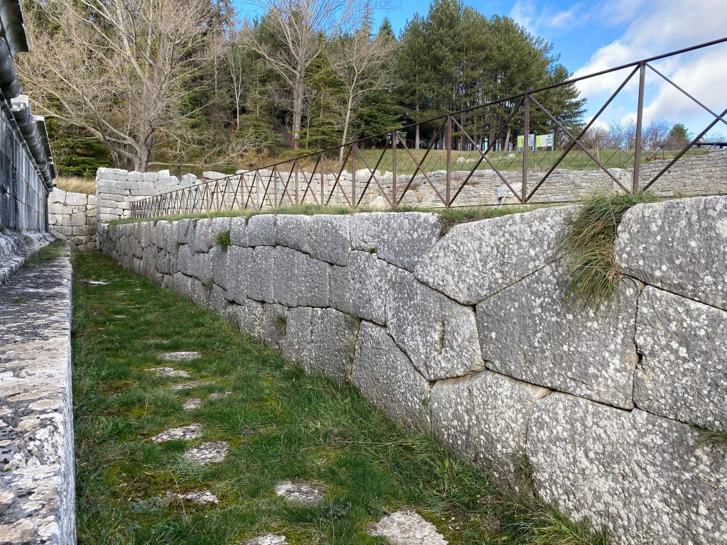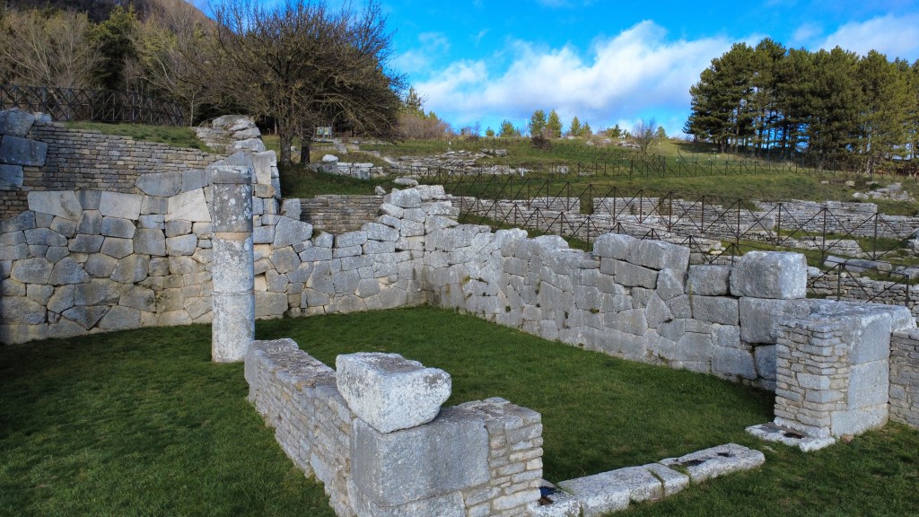 Characteristics: Pietrabbondante was a site of major religious, political and cultural importance for the Samnite people. It served as a gathering point and organizational hub for the semi independent Samnite tribes. Pietrabbondante’s polygonal walls are some of the most precise seen in Italy. Often said to have been inspired by Roman and Hellenistic styles, the site was almost entirely built by the Samnites and includes intriguing polygonal foundations which differs from more traditional ashlar masonry above. The site is characterized by a central theater and various temples. The foundational stonework and retaining walls are made of exceptional polygonal blocks.