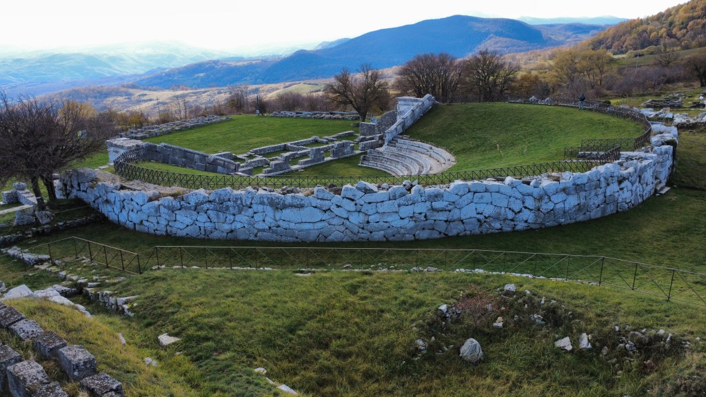 - Santuario Italico di Pietrabbondante – Samnite theater, Temple B and surrounding polygonal wall foundations
