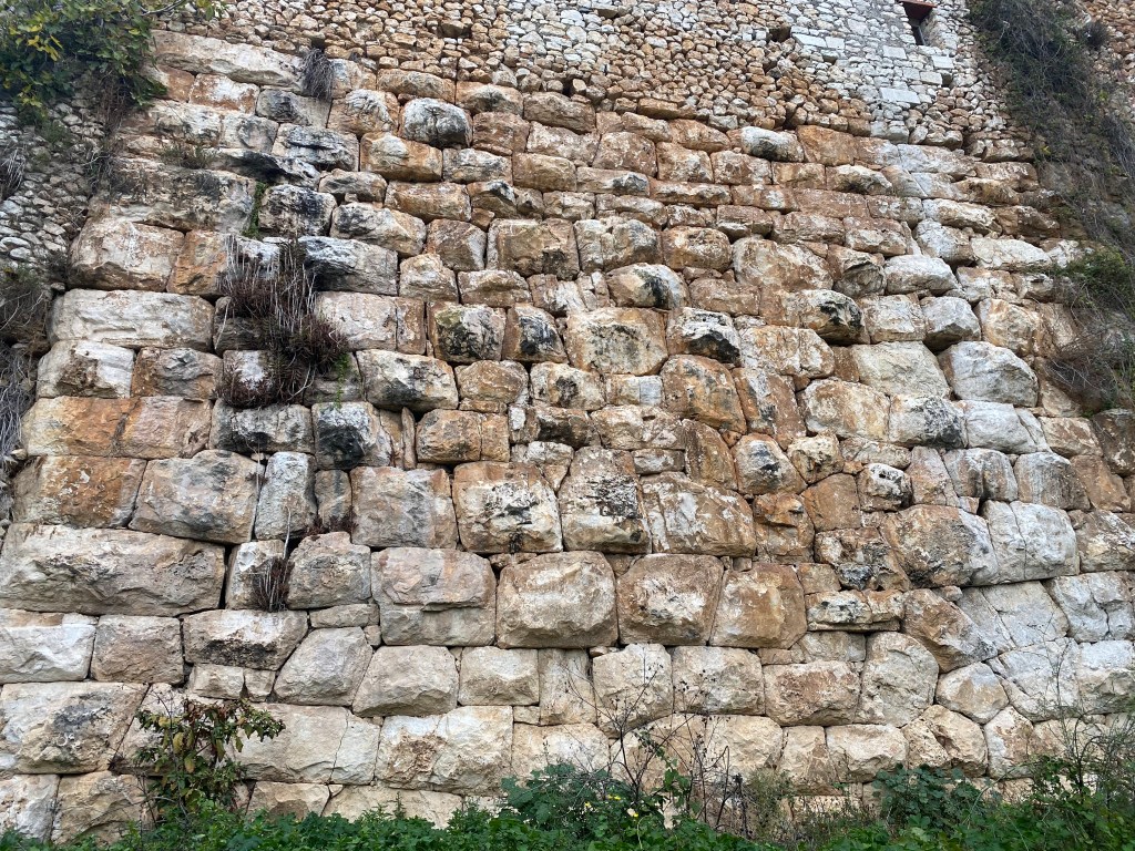 Characteristics: Another polygonal site of note in the Lepini Mountains, Sezze (or Setia as it was known in ancient times) preserves significant stretches of polygonal walls. The majority are integrated into the modern town, and the outer sections follow the steep contours of the hillside with commanding views over the Pontine plain. As opposed to most polygonal sites which display only one or two styles of masonry, Sezze displays a wide variety of techniques across the entire spectrum of polygonal stonework. These include moderately to precisely worked multi-angled blocks and more rectangular blocks akin to Lugli’s 4th style. Notable features of the site include polygonal towers and terraces, many of which are completely swallowed by overgrowth. Their original beauty can still be appreciated from 17-19th century drawings and some early 20th century photos. More recent grassroots efforts to preserve and maintain the walls have had some success in revealing these ancient structures again; however, little investment from the town itself has left them obscured at future risk of erosion and decay.